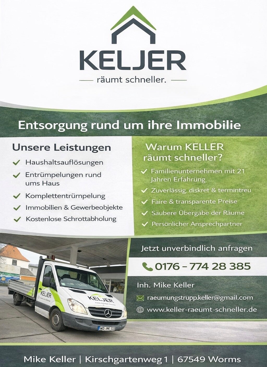 Seit über zwei Jahrzehnten sind wir, Keller räumt schneller, Ihr vertrauensvoller Partner in Worms für Haushaltsauflösungen und Entrümpelungen. Als Familienunternehmen legen wir größten Wert auf Diskretion, Zuverlässigkeit und eine saubere Übergabe. Hier erzählen wir Ihnen, was uns antreibt und warum wir die richtige Wahl für Sie sind.